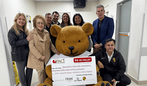 Valor foi arrecadado por meio de uma parceria entre o Bandeiras Centro Empresarial e o Porsche Clube Sorocaba. Cheque foi destinado integralmente ao hospital, que